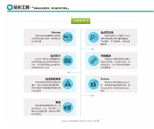 站長可以通過工具區(qū)提供的死鏈推送、站點索引量查詢、站點抓取報錯查詢、robots工具、站點壓力反饋和網(wǎng)站安全監(jiān)測等功能,減輕網(wǎng)站服務(wù)器壓力,提升網(wǎng)頁抓取效率和質(zhì)量,減少網(wǎng)站安全隱患,從而實現(xiàn)網(wǎng)站的精細(xì)化運營。資料區(qū)提供了搜索優(yōu)化案例、工具使用說明、網(wǎng)站運營經(jīng)驗文檔,幫助站長汲取網(wǎng)站運營經(jīng)驗、夯實理論基礎(chǔ);站長社區(qū)的則是站長間溝通和分享的平臺,既會定期組織交流活動和分享討論,,有利于站長們?nèi)¢L補(bǔ)短提升網(wǎng)站運作技巧,解決站長面臨的典型問題。