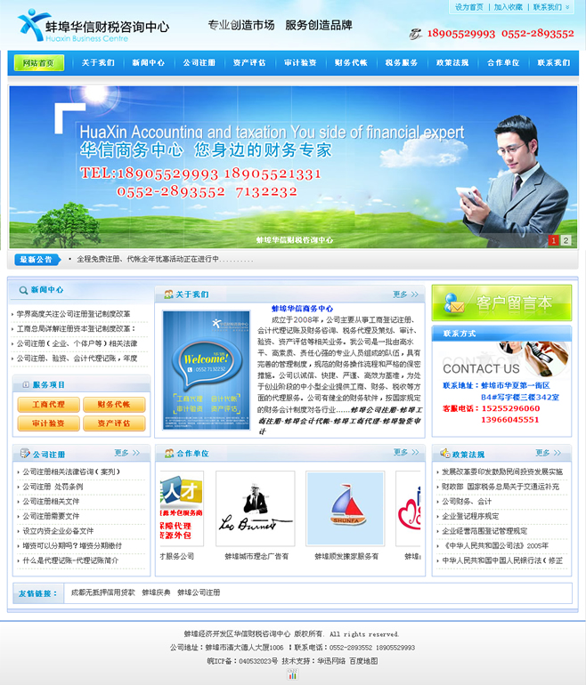 核心提示:蚌埠華信商務中心 成立于2008年,公司主要從事工商登記注冊、會計代理記賬及財務咨詢、稅務代理及策劃、審計、驗資、資產(chǎn)評估等相關業(yè)務。我公司是一批由高水平、高素質、責任心強的專業(yè)人員組成的隊伍,具有完善的管理制度,規(guī)范的財務操作流程和嚴格的保密
