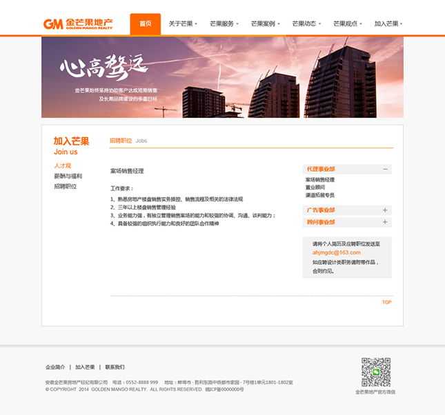 金芒果基于對中國房地產的執(zhí)著追求,憑借對市場營銷的激情創(chuàng)新,以完全經過市場檢驗的專家團隊和對市場的敏銳天賦,大膽構思、執(zhí)著實踐、激情專注、科學分析,贏得了業(yè)主的廣泛認同和支持,并以優(yōu)異業(yè)績和服務質量,被客戶譽為具實效、富激情、科學嚴謹?shù)膶I(yè)房地產服務商。